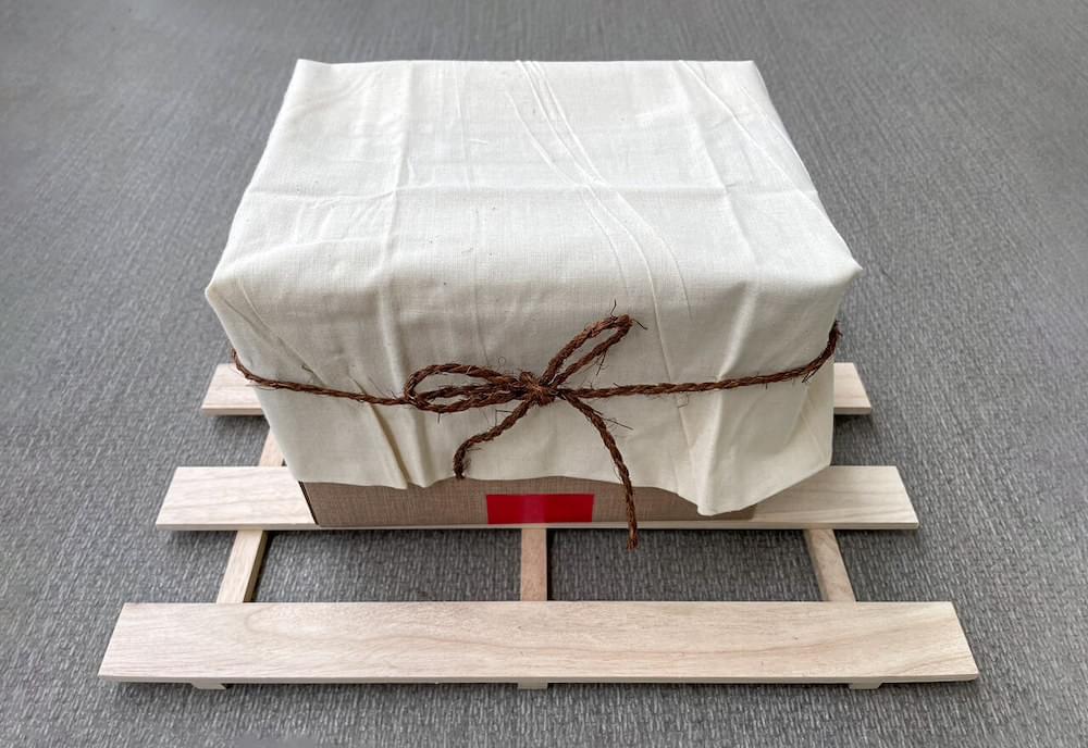 段ボールの底をガムテープで補強して、すのこの上に置きます。すのこを使うことで通気性を上げ、より良い好気性発酵を進めることができます。